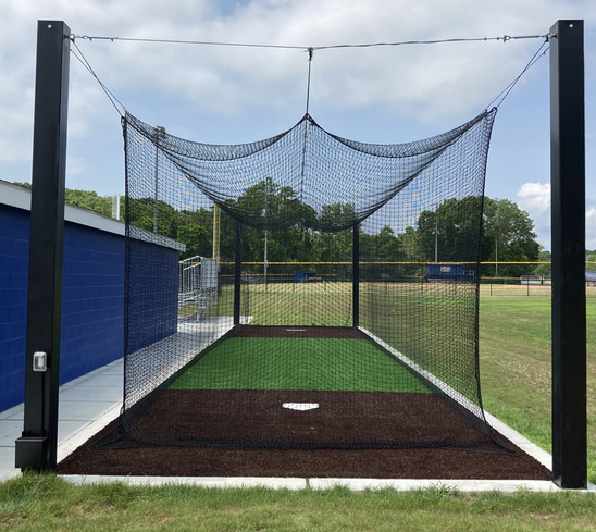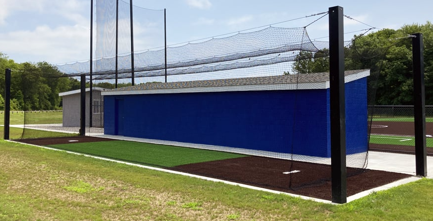 Ball field elements: equipment shed, scoreboards, batting cages, portable pitcher’s mounds, and portable outfield fencing